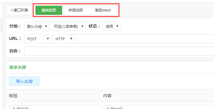 页面上方是接口编辑的三大模块: