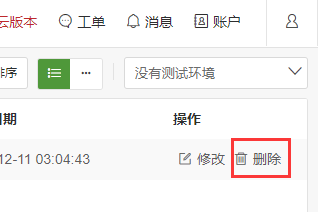 找到想要操作的版本,点击右侧的 切换 或 删除 按钮,即可 回滚/切换 或 删除 某个版本: