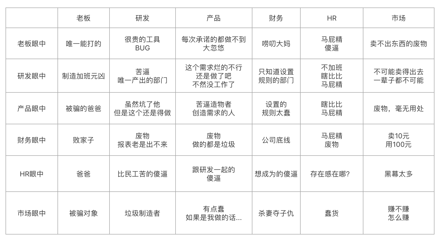 一般来说,中小型公司(好的创业团队),研发人员基本为50-100人的配置,原则上不会让CTO统管产品、UI、运营等,如果你看见一个公司CTO会统管以上一切,很有可能他是产品出生、市场出生、运营出生、销售畜生,但就不会是技术出生,这个角色真正的称呼是COO。我这边团队大概在80人左右,也会有自己的产品,但是公司级业务都是统一的产品团队在握到手里,有时候老板是最大的产品经理,有时候市场是,更多的时候还是产品自己是,各个部门都有一个太极阴阳平衡在里面,如果这种平衡失衡的话,公司一般来说是走不远的,这里后面有章节会介绍到,这里不赘述。