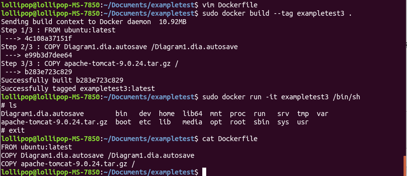 sudo docker build --tag example . #创建镜像