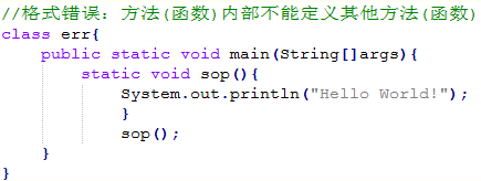 方法中只能调用方法,不可以在方法内部定义方法