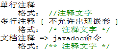 Java中的注释格式[三种]: