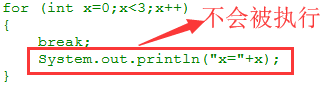 当break语句单独存在时,下面不要定义其他语句,因为执行不到。