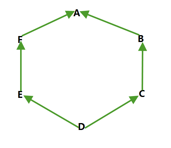 在这里为什么先找的是D而不是A呢?虽然python在找的时候它其实已经知道了C后面有一个A,但是它要优先遵循从左往右的方向去找并且C->A,D->A,如果它直接找到A的话那么D的节点就会丢失,如果一个节点丢失的话就再也找不回来了,所以第三次结果它打印了D。