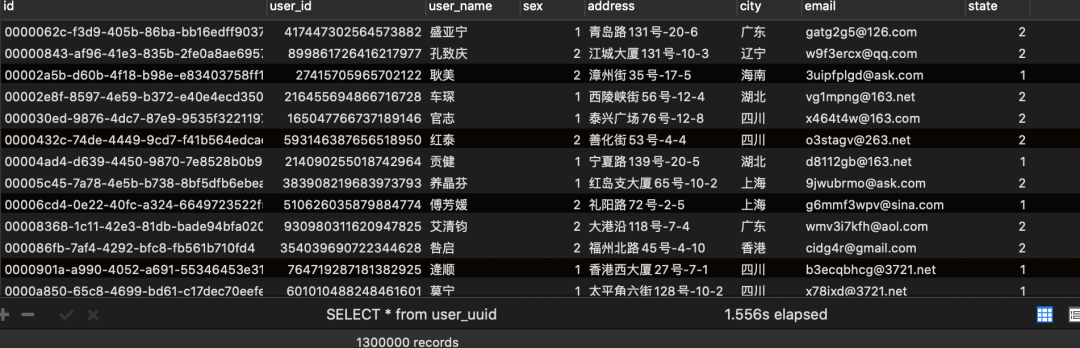 user_uuid表写入结果: