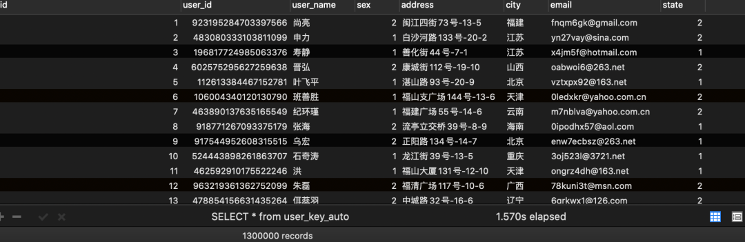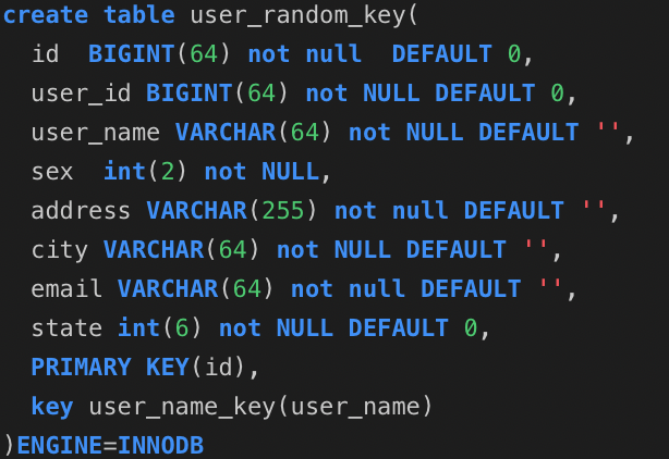 分别是user_auto_key,user_uuid,user_random_key,分别表示自动增长的主键,uuid作为主键,随机key作为主键,其它我们完全保持不变.