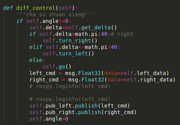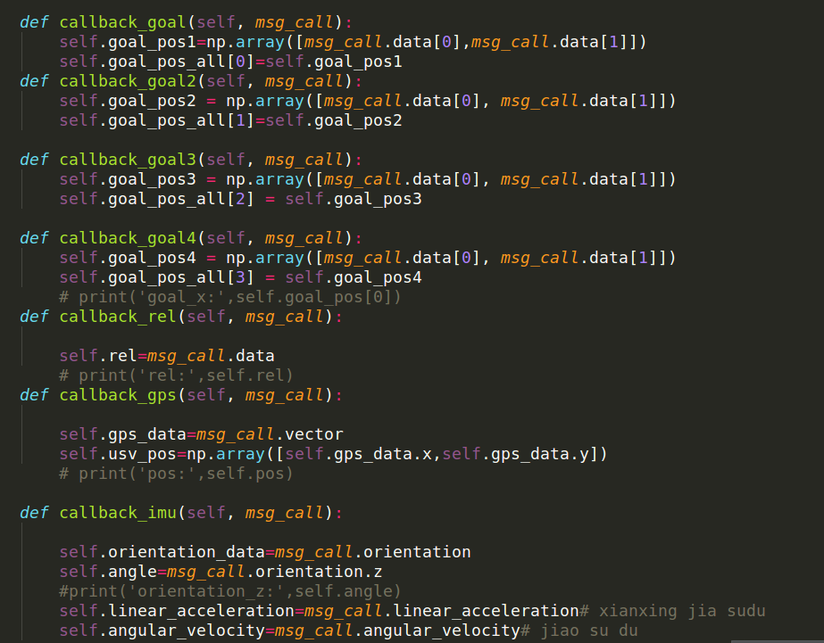 2、订阅话题的回调函数(按理说控制程序最好放在回调函数里,这样每次接收到数据就实时发送控制量。但是这是最初的仿真程序,后来实际控制的时候我改了。)
