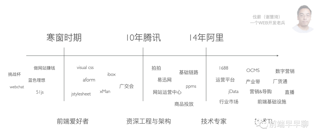 我自己其实工作是非常久的,我称自己是一个前端开发的老兵,是因为我毕业有10 来年了。我在读大学的时候,就已经非常喜欢前端,我是属于那种非常喜欢前端的工程师。我读大学的时候就喜欢折腾挑战杯,在当时比较火的社区经常去混,比如蓝色理想、51js 等。在毕业以后,那个时候可能还没有专职的前端,我做的其实就是网站开发,进入了一家广州的公司,参与到广交会的系统开发。当时我自己也是非常喜欢折腾的,写过很多工具,比如 CSS 的编辑器, Visual CSS (现在还有下载),表单库比如 AForm(有很多人在用)。在工作两年后的 2010年,我进入到深圳腾讯,做的是腾讯的电商业务,大家现在可能都不知道 腾讯的 拍拍网 和 易迅网 。易迅网 可能有些人还有印象,它当时是能够跟京东并驾齐驱的一个网站,在 14 年整个腾讯电商被京东收购了,此时的大团队比较动荡,阴差阳错之下,我就被推荐到了阿里巴巴。