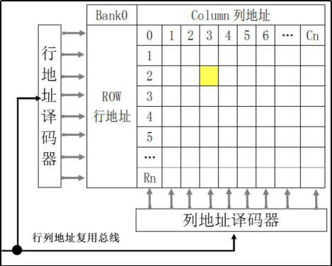 SDRAM芯片向外部提供有独立的BA类地址线用于Bank寻址,而行与列则共用A类地址线。