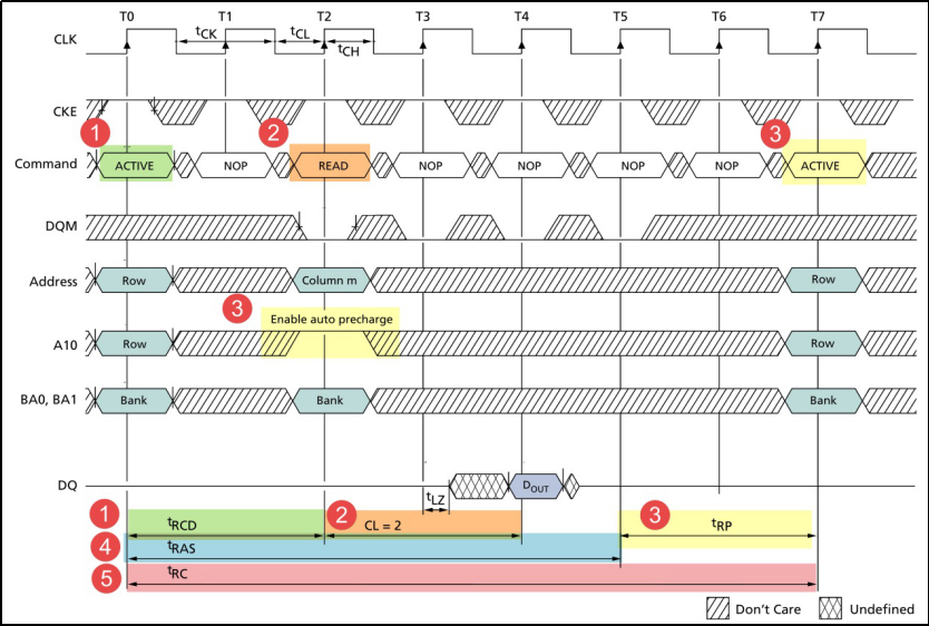 预充电可以通过独立的命令控制,也可以在每次发送读写命令的同时使用“A10”线控制自动进行预充电。实际上,预充电是一种对工作行中所有存储阵列进行数据重写,并对行地址进行复位,以准备新行的工作。