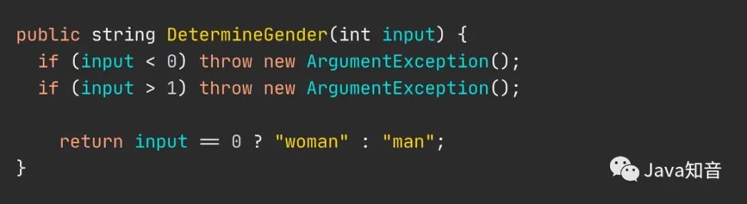 假设我们从以前就有了DefineGender方法,要求提供的输入值必须始终为0或1。