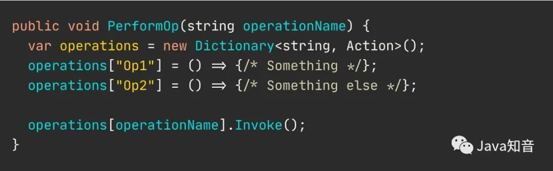 也许有人倾向于使用久经考验的If-Else。如果添加新操作,则只需简单地添加其他内容即可。很简单 但是,就维护而言,这种方法不是一个好的设计。