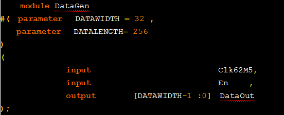 数据源产生模块使用PLL倍频出来的62.5MHz时钟,产生数据格式如下: