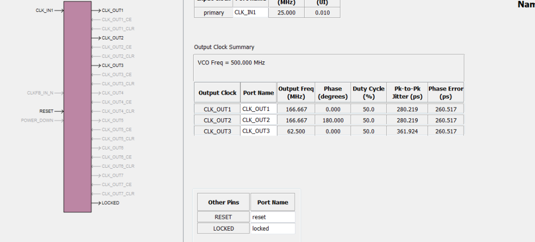 Locked信号需要等锁相环锁定时钟后,输出的时钟才能有效,此PLL设计使用的是高有效的复位。