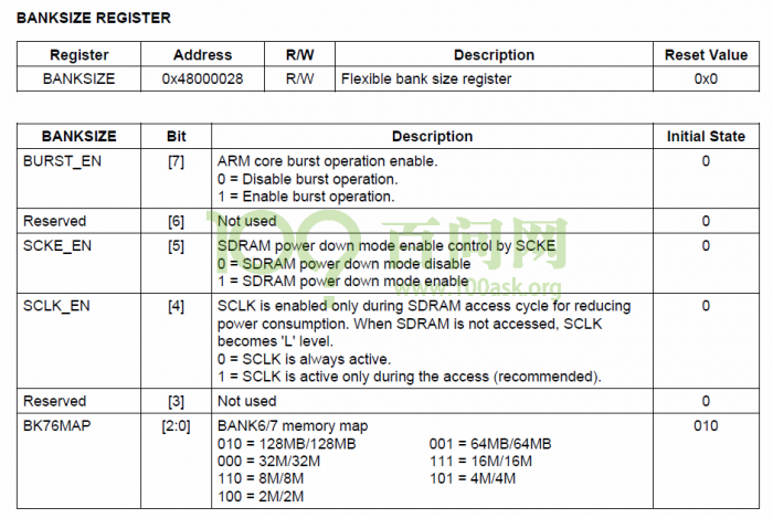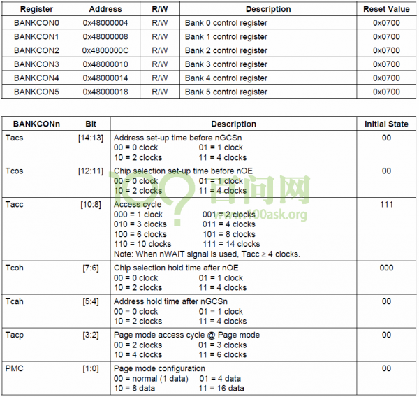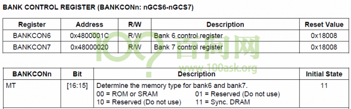 BANK0--BANK5只需要设置BWSCON和BANKCONx(x为0~5)两个寄存器;