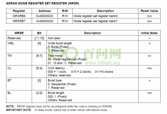 5. SDRAM模式设置寄存器MRSRBx6(SDRAM MODE REGISTER SET REGISTER)