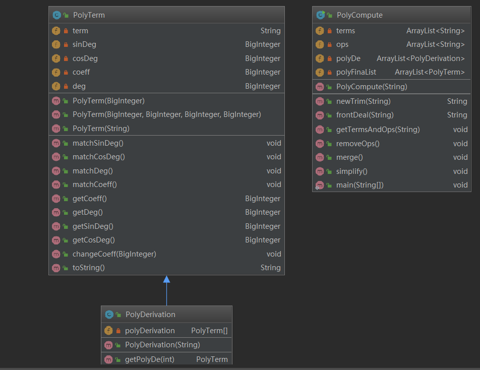 PolyDerivation继承PolyTerm,修改构造器,继承PolyTerm的Methods.
