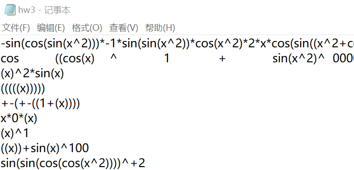 利用python把输入,输出存到文件中,利用matlab读取文件,把输入用matlab求导后,与输出做比对(这里我采用了给x赋 [-100,100]区间内的值,比对计算结果的方法)。