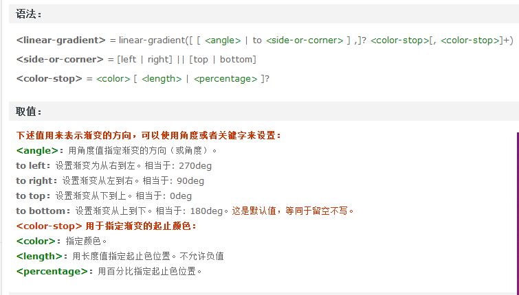 示例代码: linear-gradient(#fff, #333); linear-gradient(to bottom, #fff, #333); linear-gradient(to top, #333, #fff); linear-gradient(180deg, #fff, #333); linear-gradient(to bottom, #fff 0%, #333 100%); - demo代码: