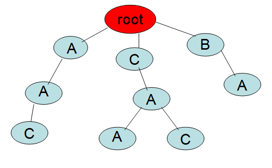 首先我们来看看字典树是怎么建立的(如:AAC,CAA,CAC,BA)