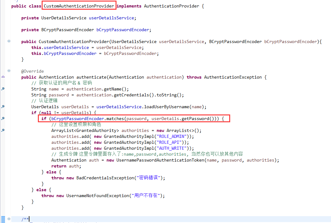 auth.authenticationProvider(new CustomAuthenticationProvider(userDetailsService, bCryptPasswordEncoder));