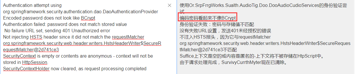 并且这里如果没有存储我们登录的信息时,可能也会有个坑,就是密码加密后与原密码做对比会报如下错误
