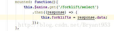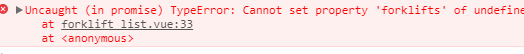 vue整合的axios,使用vue中的钩子函数在页面组件挂载完成之后向后台发送一个get请求然后将返回后的数据赋值data()中定义的属性,执行后前端报错: