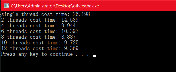 cout << "12 threads cost time: " << endTime - startTime << endl;