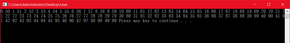 于是可以发现,再设置为单核之后,程序会创建两个线程,这样的结果就是从0 50开始划分,这样显然是没有充分利用cpu的,所以将电脑设置为原来的双核。