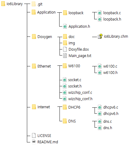 ioLibrary具有与上图相同的目录结构,主目录如下。