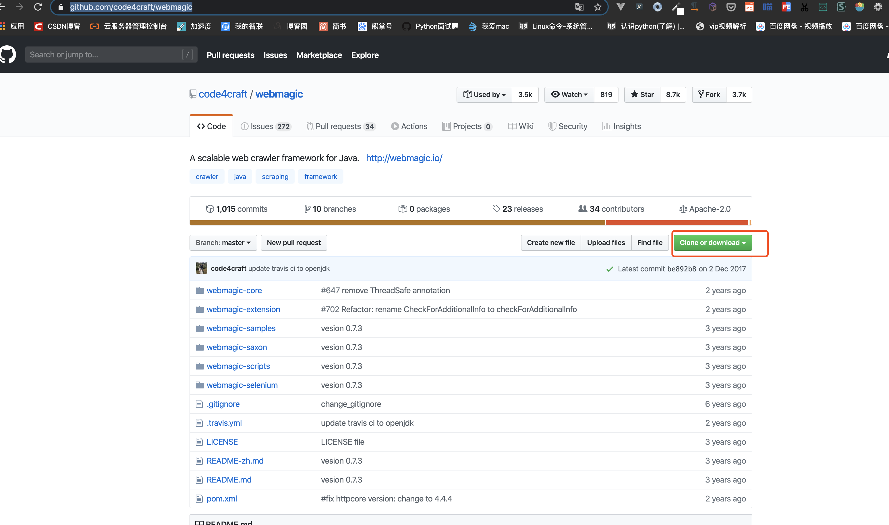首页 去 https://github.com/code4craft/webmagic 下载最新master源码