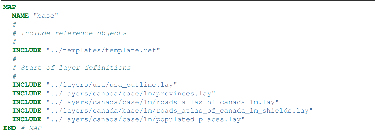 以下是一个映射文件的示例,其中所有层都在单独的.lay文件中,所有其他对象(web、reference、scalebar等)都存储在一个aij.ref a i文件中: