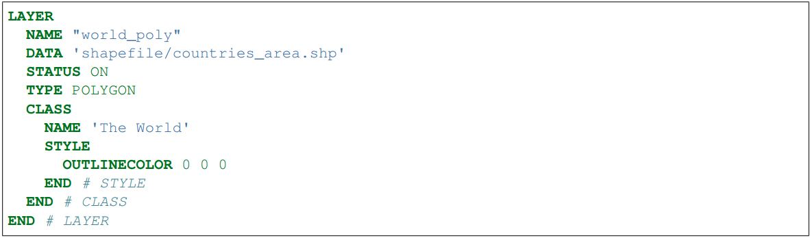 •典型的样式信息存储在图层LAYER的类CLASS和样式STYLE对象中。