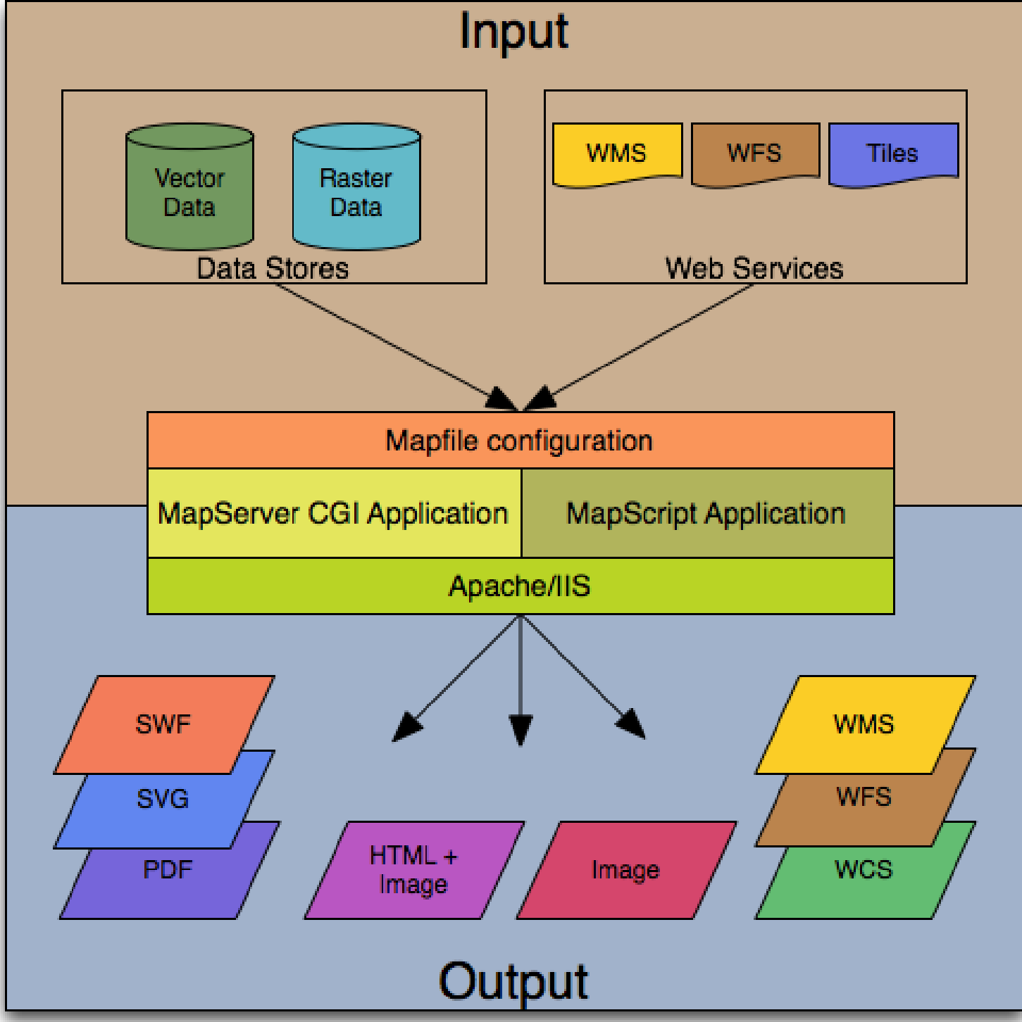 在其最基本的形式中,mapserver是一个CGI程序,它在Web服务器上处于非活动状态。当请求发送到MapServer时,它使用请求URL和映射文件中传递的信息来创建请求映射的图像。请求还可以返回图例、比例尺、参考地图和作为CGI变量传递的值的图像。