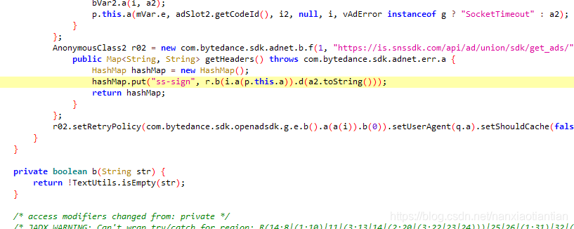 (1)打开jadx,将apk拖入并查找关键词:req_sign,定位到具体代码位置: