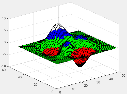 % 分成3部分,由图可以看出是按函数值的大小映射颜色