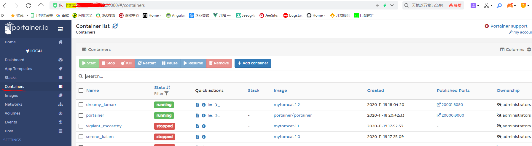 这时就可以在portainer管理工具中启动、关闭这个容器了。