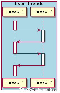 比如处理器执行两个线程,处理器实际在两个线程之间来回切换,如下图: