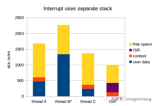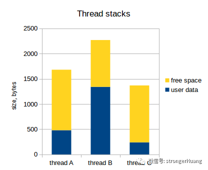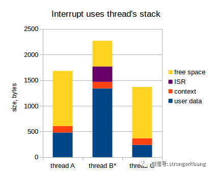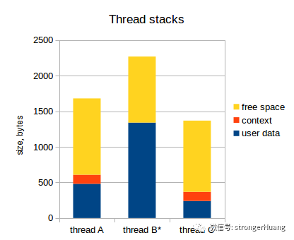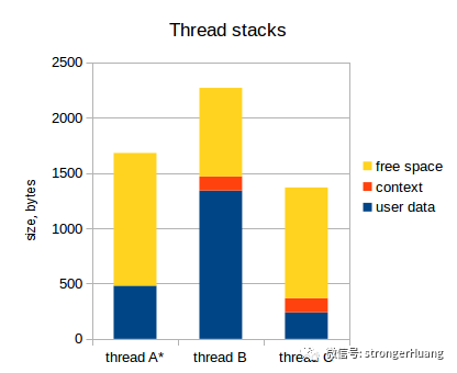 将所有寄存器值保存到堆栈中(保存到线程A堆栈的顶部);