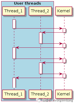 大概意思就是:当我们需要从一个线程切换到另一个线程时,内核获得控制权,执行必要的内务处理(至少要保存和恢复寄存器值),然后将控制权转移到下一个线程以运行。