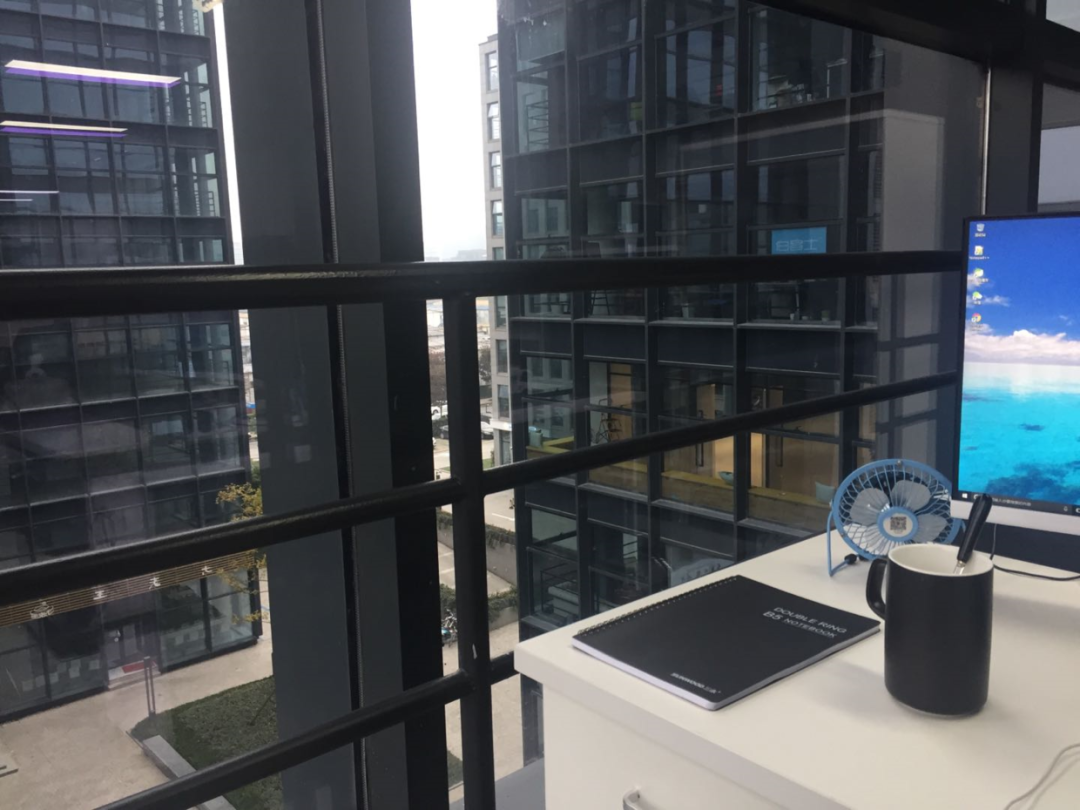 到后来环比了地铁、公交、饮食等各种因素之后,我们终于定了一个 300 方的办公场地,嘿嘿我挑的,倍棒的落地窗。