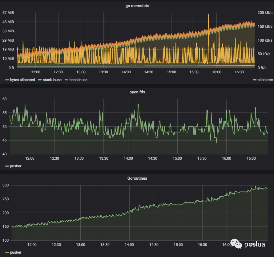 最近我在优化一个 push 服务的时候,便观察到了一个 goroutine 泄露问题: