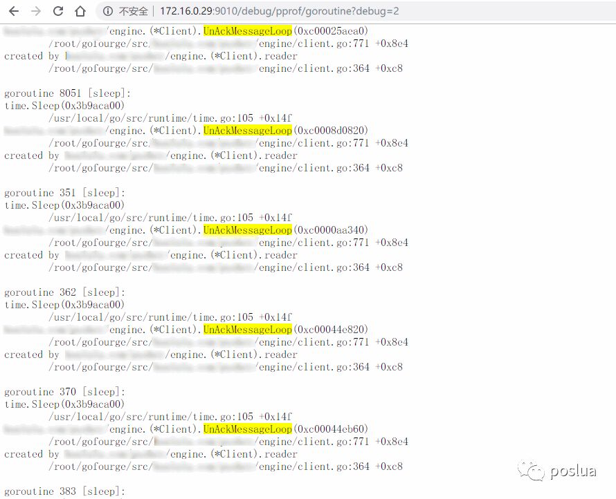 就拿我的这次案例来说,直接通过 HTTP 地址就可以拿到所有的 goroutine 概况: