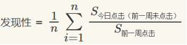 同样以类目为例,今天我点击了一个我感兴趣的商品,而这个商品的类似恰恰是我前一周都没有点击过过的内容,这就说明推荐系统的为我推荐了一个我之前都没有关注过并且我感兴趣的内容,也就是系统的发现性,在算出每个人的值之后,再进行求平均计算。