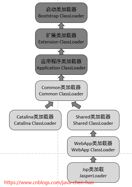- Jsp类加载器,每个jsp页面一个类加载器,不同的jsp页面有不同的类加载器,方便实现jsp页面的热插拔