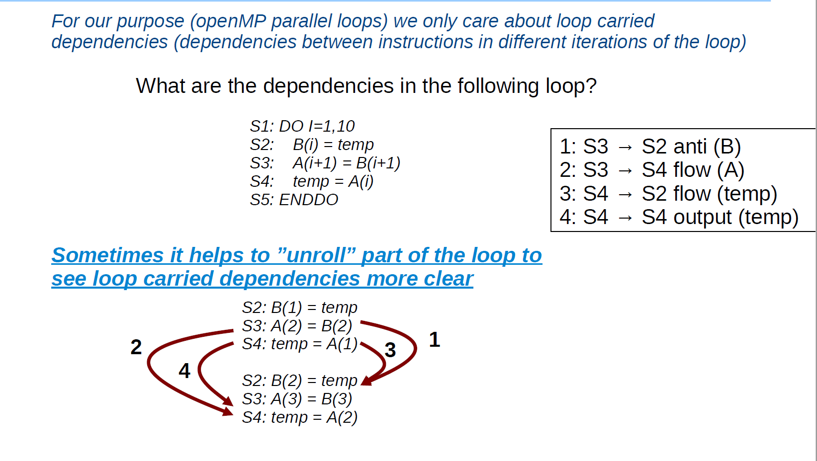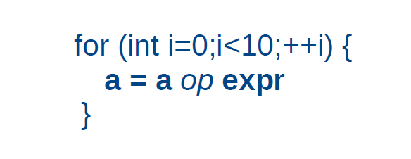 a = a 运算符 表达式 称为归约运算。显然,变量“a”带有一个 流依赖关系(稍后将讨论),它阻碍了了并行化。