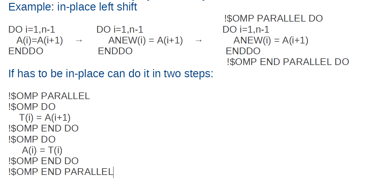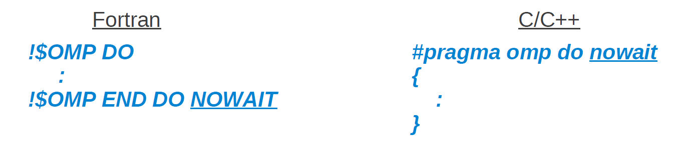 !$OMP BARRIER 将强制每个线程在该屏障处等待,直到所有线程都达到该屏障为止。!$OMP BARRIER 可能是最著名的同步机制;显式或隐式地。我们之前讨论过的以下omp指令包含一个隐式屏障: