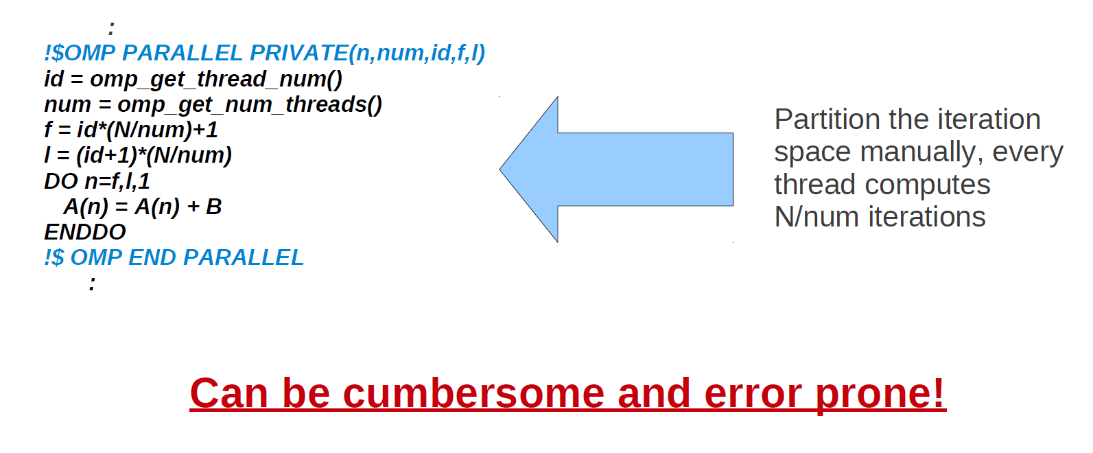 OpenMP帮你划分好了迭代空间。你唯一需要做的就是添加!$OMP DO 和!$OMP END DO指令