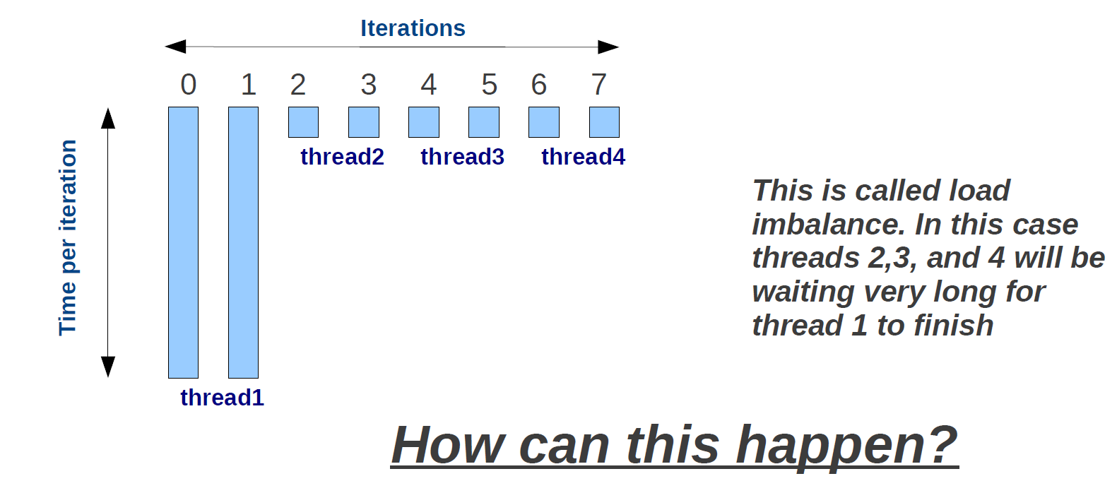 在静态调度中,迭代次数在所有openmp线程中均匀分布(即每个线程将被分配相似的迭代次数)。这并不总是分割的最佳方式。这是为什么?
