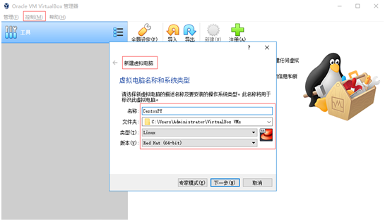 选择“控制”—“新建虚拟电脑”,给你的虚拟机起个名字,选择文件夹、系统类型、版本: